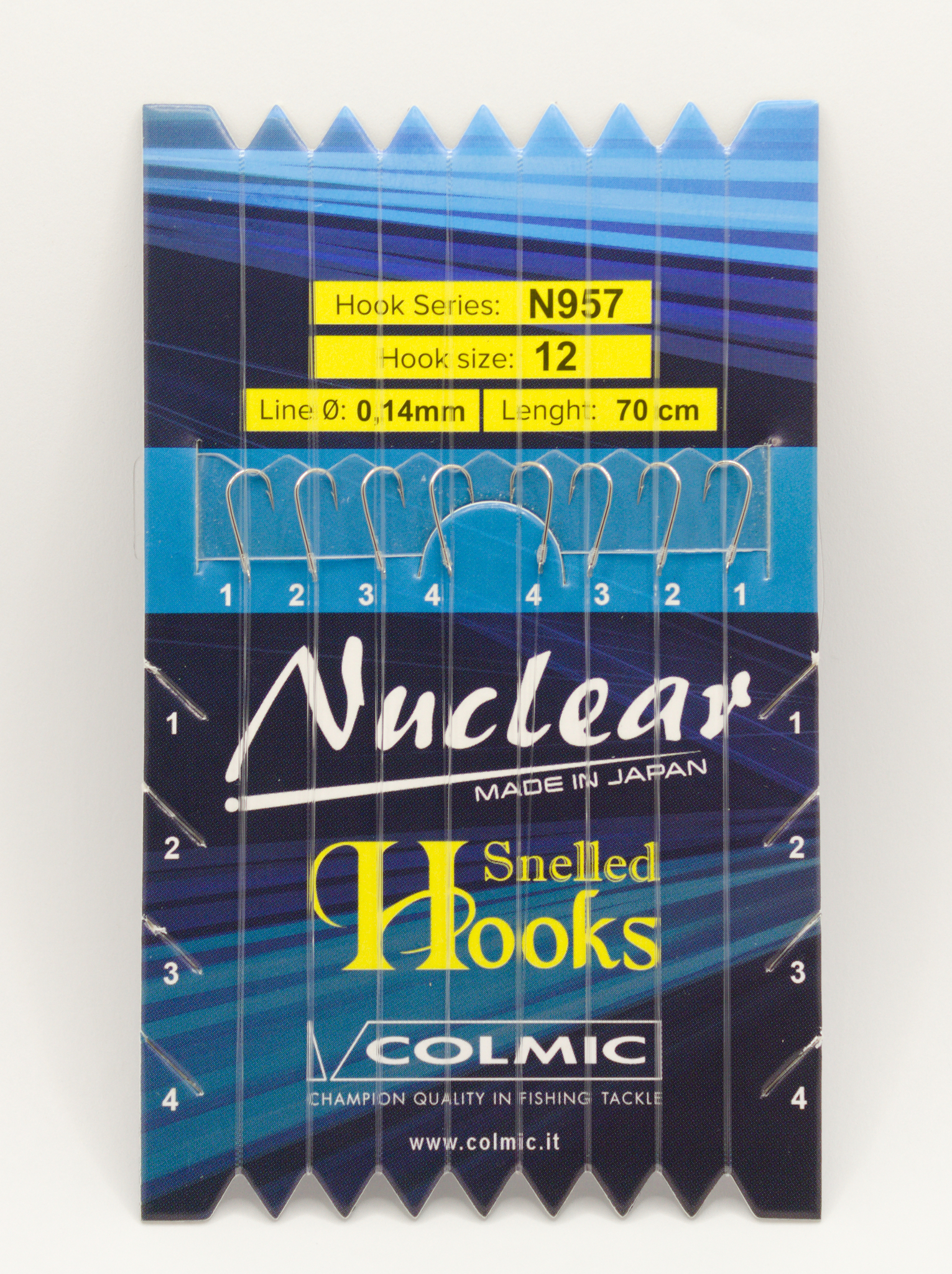Perukkeet on sidottu Colmicin Xilo-siimalle. N957 on lapiopäinen koukku. Pakkauksessa on 8 peruketta.