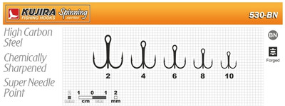 Kolmihaarakoukku valmistettu hiiliteräksestä ja kemiallisesti teroitettu. Väri on musta nikkeli.