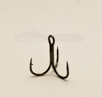 Isokitainen lyhytvartinen kolmihaarakoukku Valmistettu hiiliteräksestä ja kemiallisesti teroitettu. Väri on musta.