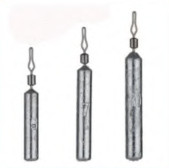 Drop shot -kalastukseen tarkoitettu pitkä paino ovaalilla leikarilla.