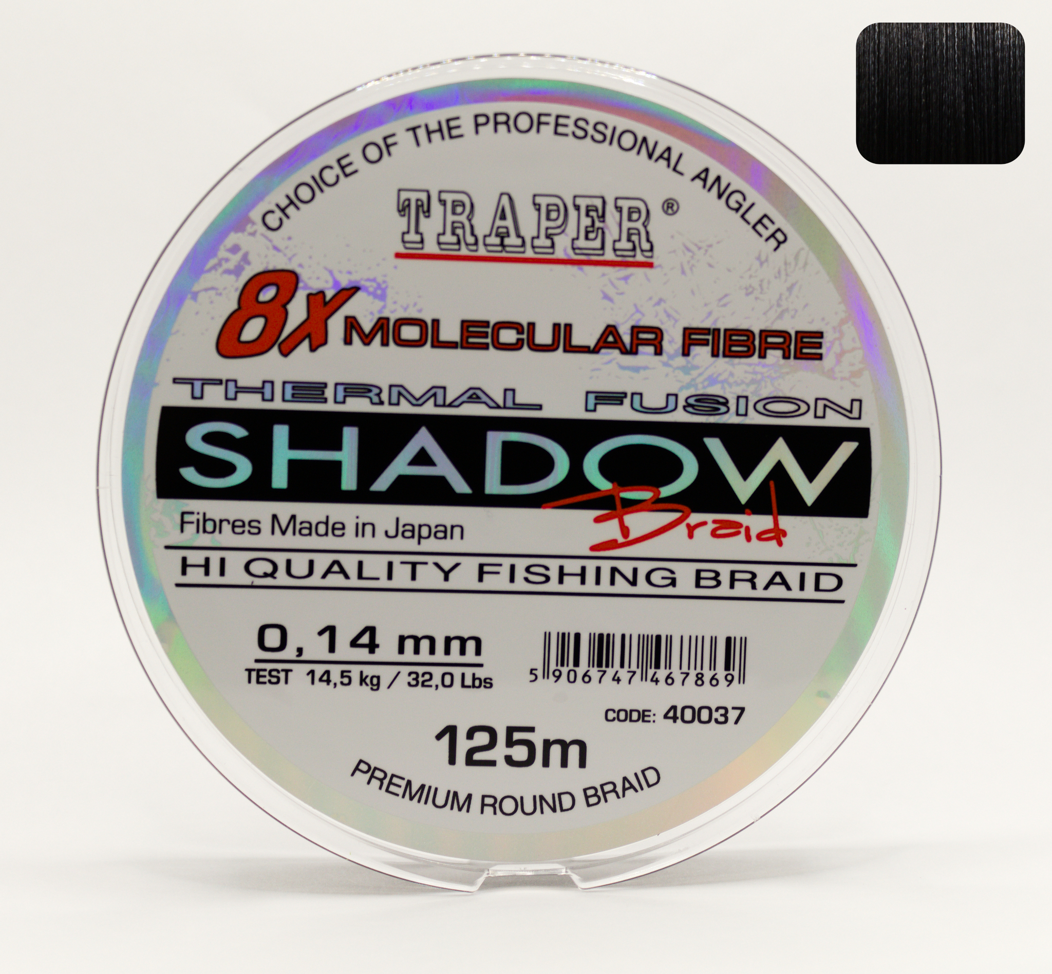 Musta punottu pyöreä siima. Erittäin tiukasti punotut mikrokuidut tekevät siimasta hiljaiseen ja kestävän. Siima punottu kahdeksasta japanissa valmistetusta mikrokuidusta.