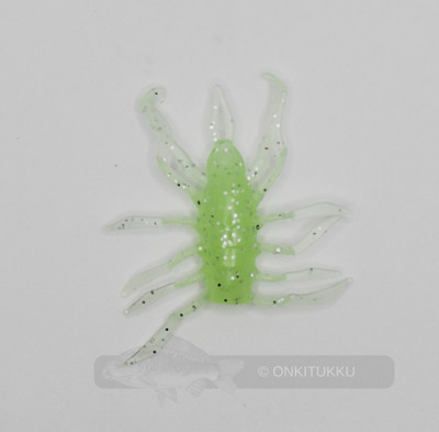 Pieni pimeässä hohtava vihreä rapu jigi hopeahileillä.