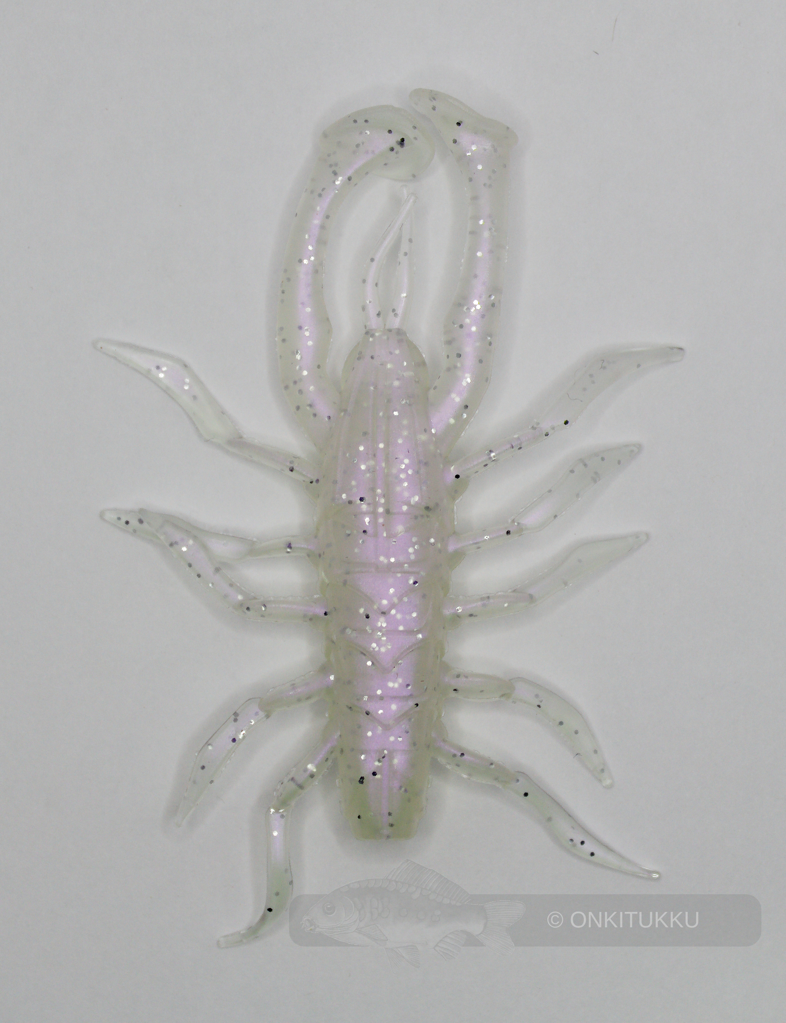 Vaalea rapu jigi hopeahileillä joka, heijasta kulmasta riippuen violettina.