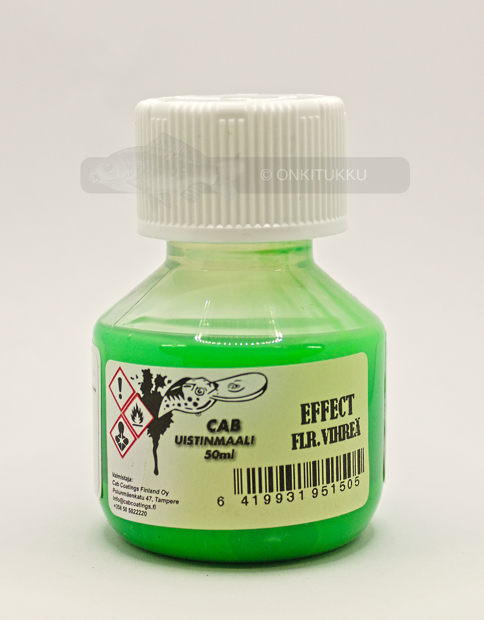 CAB Effect-maalisarjaan kuuluu erikoispigmentoituja värejä. Sarja koostuu fluorisoivista väreistä ja erilaisista metallipigmentoiduista väreistä.  Fosfori on itsevalaiseva maali, joka luovuttaa varaamaansa valoa pimeässä. Effect-tuotteita ei suositella viimeiseksi kerrokseksi uistimiin.  Korkean kiillon saavuttamiseksi suosittelemme pintalakkaukseen CAB-uistinlakkaa. CAB-maalit ovat liuotinohenteisia.