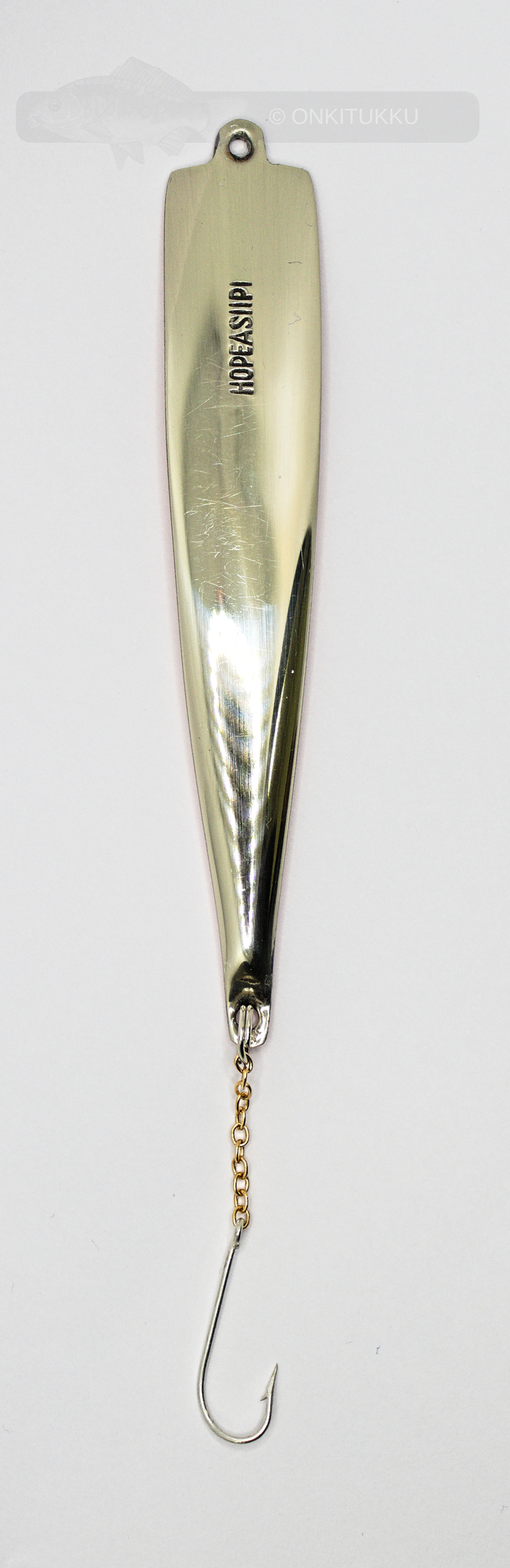 Hopeasiipi on jo ollut pitkään venepilkkijöiden suosiossa. Kiilamainen muotoilu ja hyvä painojakauma saa pilkin uppoamaan nopeasti. Pilkki toimii myös erinomaisesti kalastettaessa hitaasti ajelehtivasta veneestä. Pilkin saa uimaan melko laajalti kun nykäisee kohtalaisen kovaa. Syvissä vesissä tämä pilkki uppoaa nopeasti ja toimii talvella isojen kalojen jahdissa. Pilkissä on vakiona kirkas ketjukoukku. Puustjärvi on valmistanut pilkkejä jo 50-luvulta asti.