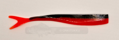 Kaksivärinen haarapyrstöinen kalajigi. Päältä musta hopeahileillä, alapuolelta punainen. Venyvyys noin 40%. Erittäin hyväksi todettu malli kuhalle. Pussissa 4kpl