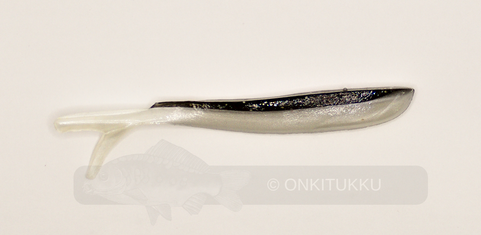 Kaksivärinen haarapyrstöinen kalajigi. Päältä, musta hopeahileillä, alapuolelta valkoinen. Venyvyys noin 40%. Erittäin hyväksi todettu malli kuhalle ja ahvenelle. Pussissa 4kpl