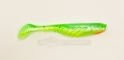 Lapapyrstöinen kalajigi. Jigissä on uurteet jotka saavat aikaan houkuttelevan uinnin ja värinän. Väritykseltään selkä on vihreä mustilla hileillä, vatsa on kellertävä ja pään alapuolella oranssi läikkä. Venyvyys on noin 40%. Ahvenen viimeinen ateria voi olla tässä. Pussissa 5kpl