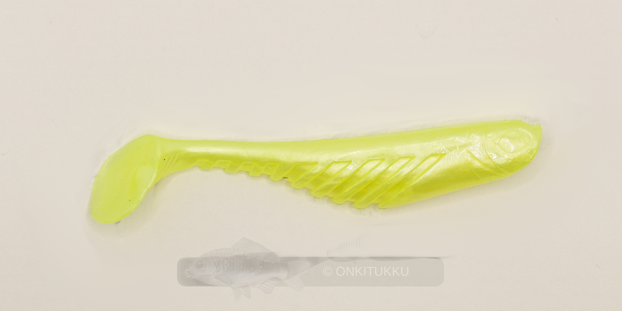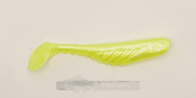 Lapapyrstöinen kalajigi. Jigissä on uurteet jotka saavat aikaan houkuttelevan uinnin ja värinän. Väritykseltään vaalean keltainen. Venyvyys on noin 40%. Ahvenen viimeinen ateria voi olla tässä. Pussissa 5kpl