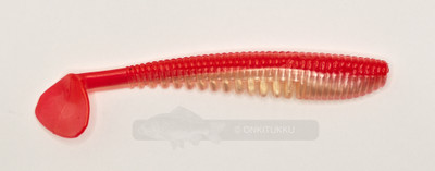 Lapapyrstöinen kalajigi. Jigissä on uurteet jotka saavat aikaan houkuttelevan uinnin ja värinän. Väritykseltään selkä on punainen, vatsa on kermanvalkoinen. Venyvyys on noin 40%. Ahvenen viimeinen ateria voi olla tässä. Pussissa 5kpl