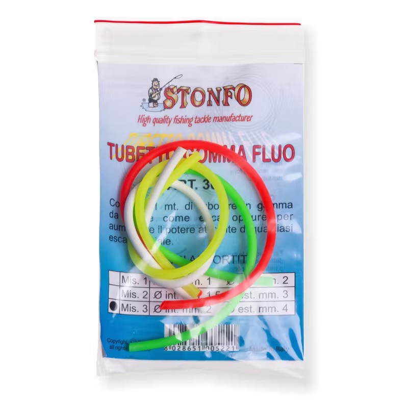 Lajitelma fluo värisiä letkuja. Letkujen värit: Punainen, vihreä, keltainen ja valkoinen. Letkujen kokonaispituus on noin 1m.