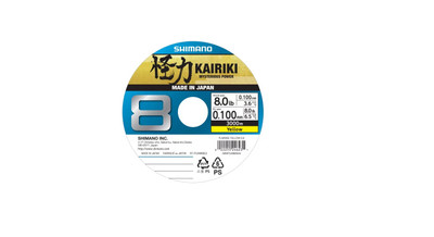 Punottu pyöreä Shimano Kairiki 8 Yellow värissä. Hiljainen ja kestää hyvin hankausta.